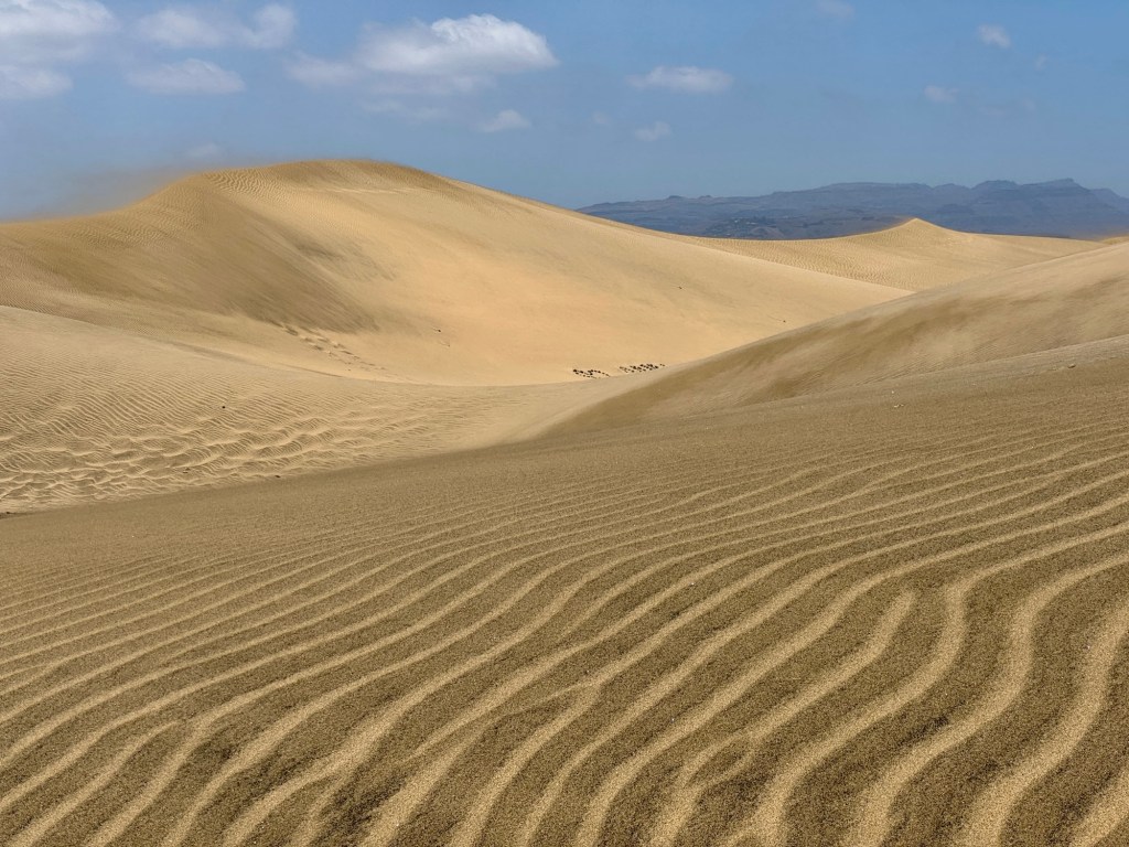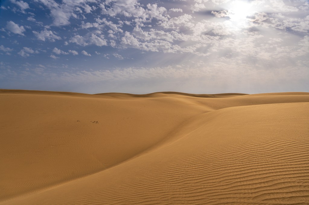 Die Dünen von Maspalomas sind eine beeindruckende Naturlandschaft auf der Kanarischen Insel Gran Canaria, bekannt für ihre goldenen Sandflächen und atemberaubenden Aussichten. Sie erstrecken sich über etwa 400 Hektar und bilden ein einzigartiges Ökosystem, das Heimat für zahlreiche Pflanzen- und Tierarten ist. Die Dünen sind Teil des geschützten Naturparks Maspalomas und ziehen Jahr für Jahr Touristen an, die die Ruhe und Schönheit der Natur genießen möchten. Ein Spaziergang durch die Dünen bietet ein Gefühl von Abgeschiedenheit und eine perfekte Kulisse für Fotos und Erholung.