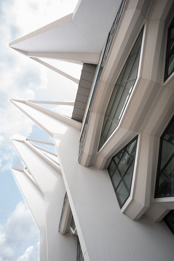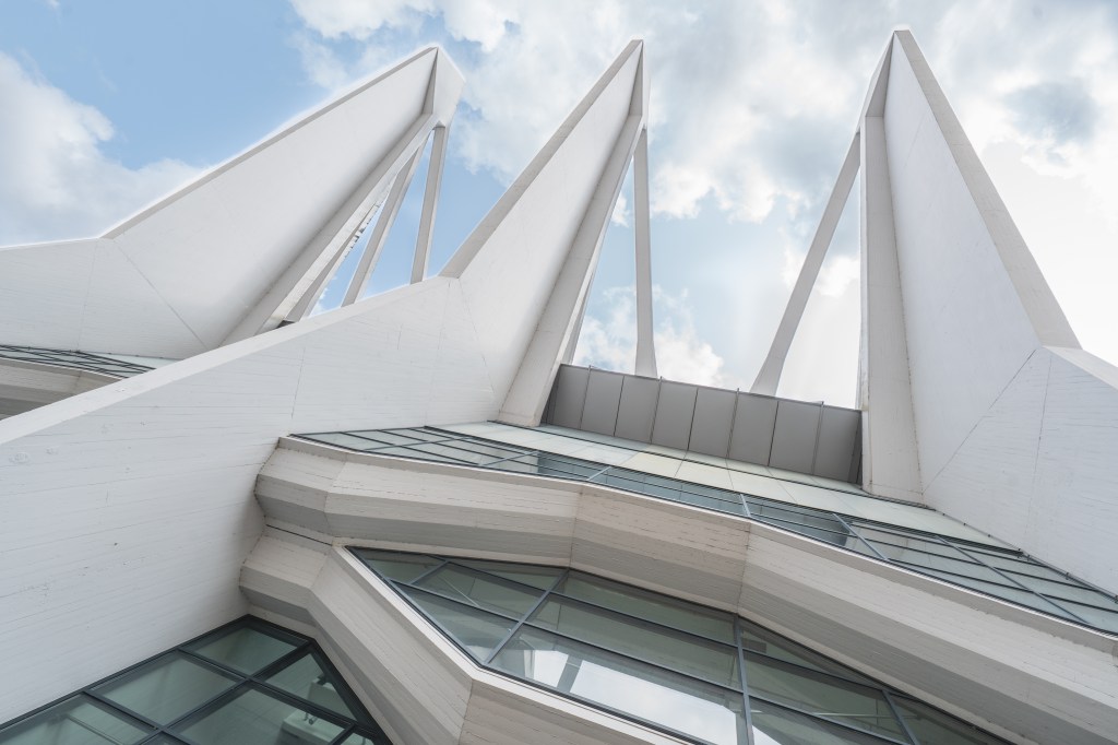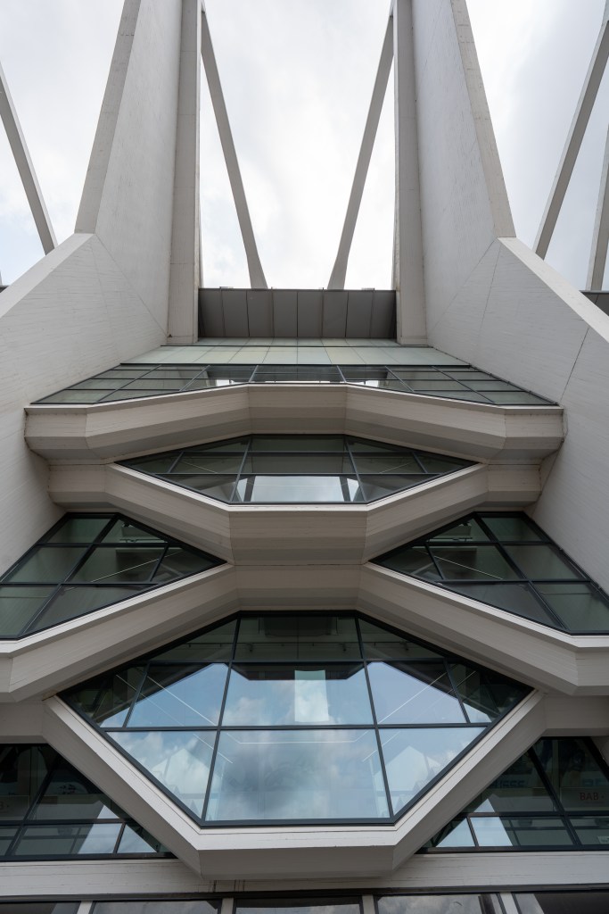 Das Bauwerk mit den „Stadtkrallen“. Ursprünglich war sie vor allem als Mehrzweckhalle für Sport, Konzerte und große Shows gedacht. Architektonisch beeindruckte sie durch eine innovative Hängeseilkonstruktion: Sechs markante Betonbinder trugen über stählerne Seile das Dach und ermöglichten so einen stützenfreien Innenraum. Auch wenn diese Konstruktion bei der Modernisierung 2004/2005 durch eine neue Dachstruktur ersetzt wurde, blieben die Binder als prägendes Gestaltungselement erhalten.